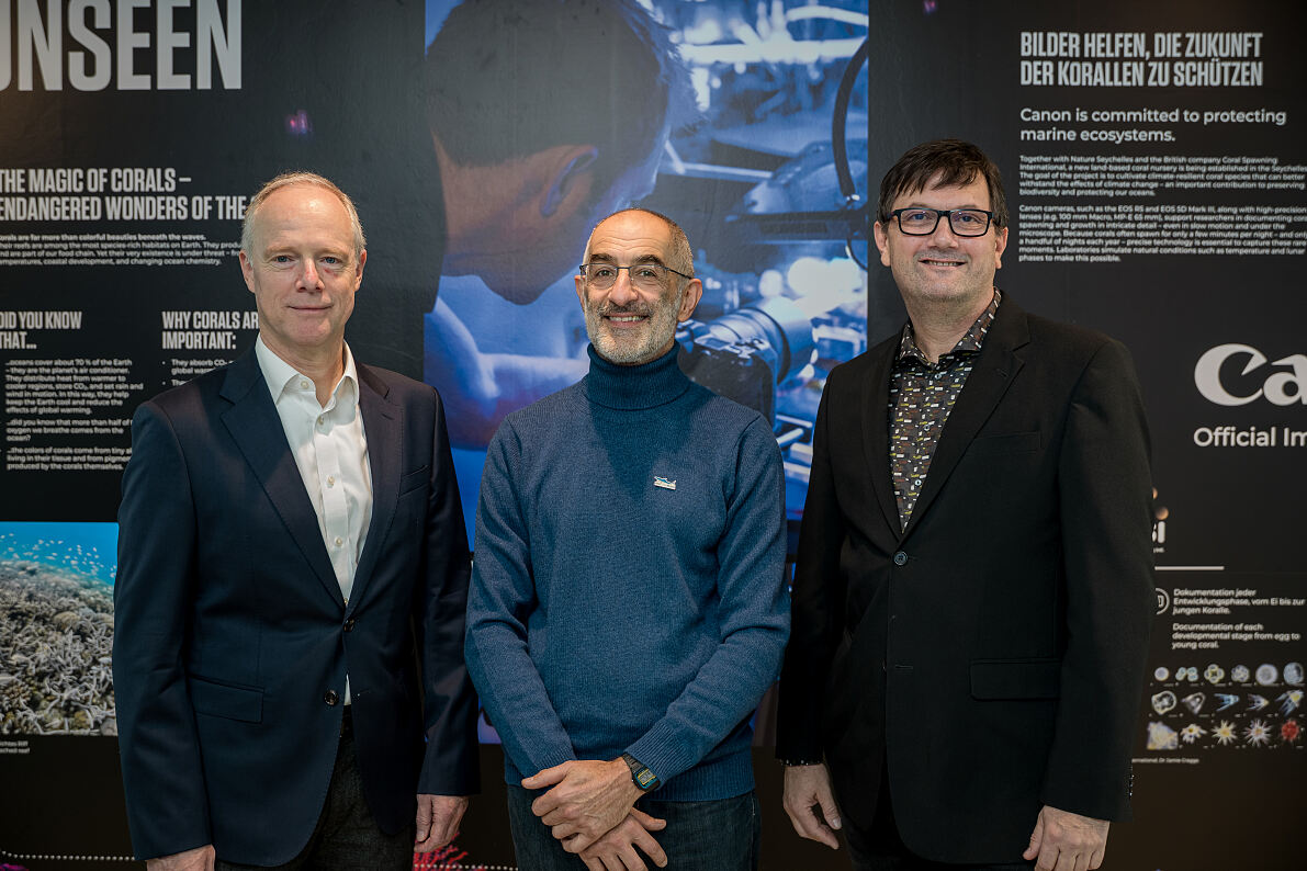 v.l.n.r.: Wilbert Verheijen, Managing Director von Canon Austria, Dr. Daniel Abed-Navandi, Meeresbiologe und stellvertretender Direktor des Haus des Meeres und Johannes Loreck, Produktspezialist bei Canon Austria